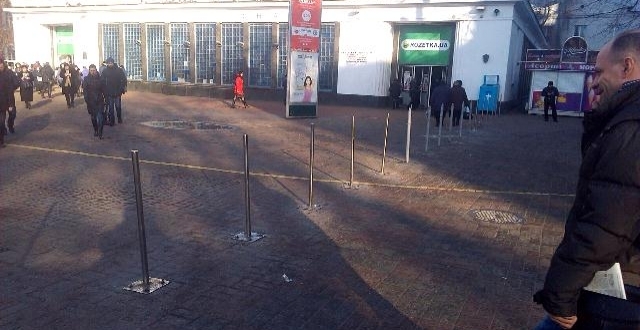 Возле метро Арсенальная восстановили ограничительные столбики, чтобы не пускать автокофейни (ФОТО)