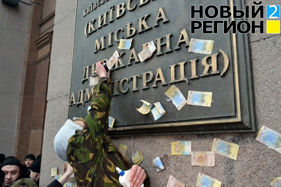В Киеве под здание горсовета в знак протеста против повышения стоимости проезда в метро пришло около 100 человек.