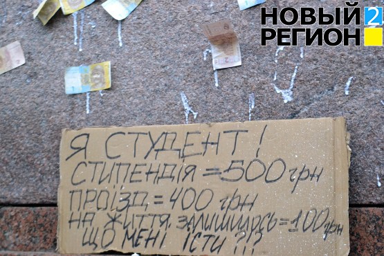 Петард в итоге не было, но в ходе акции несколько девочек сняли обувь и босыми пошли к табличке Киевской государственной городской администрации, на которую наклеили купюры номиналом 1-2 гривны, демонстрируя, что из-за повышения стоимости проезда им не хватает денег на обувь.
