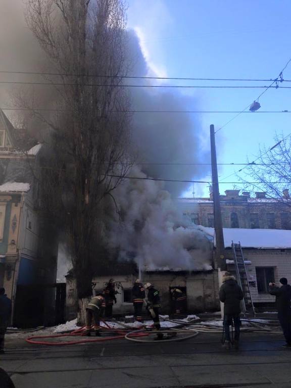 В Киеве загорелся одноэтажный дом по улице Дмитриевской, 23 – недалеко от здания телеканала "Интер".