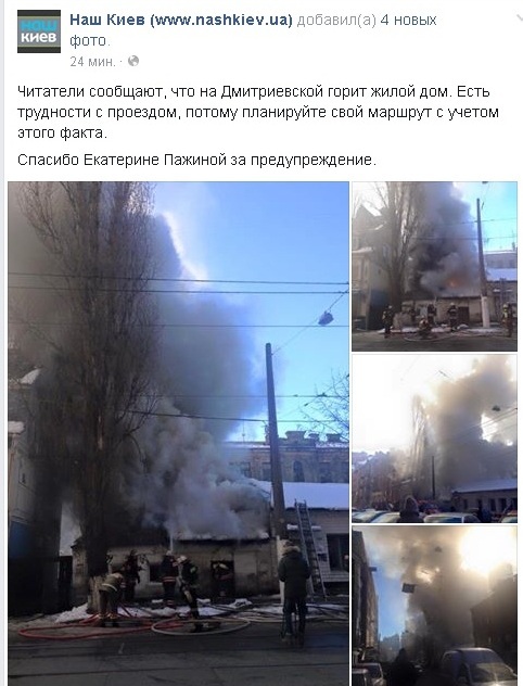 Как сообщается на странице сообщества "Наш Киев" в Facebook, на ул. Дмитриевской в связи с ликвидацией пожара наблюдаются "трудности с проездом".