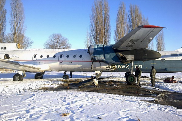 На Украине на стоянке хранения авиатехники рядом с аэропортом Борисполь столкнулись два самолета. «На самолете Ан-26Б EW-246TG технический персонал готовил двигатели к техническому прогону. В результате грубой ошибки двигатели были выведены на режим «максимал», самолет начал движение по территории стоянки и столкнулся с Як-40 UR-MIG», — рассказали в пресс-службе аэропорта.