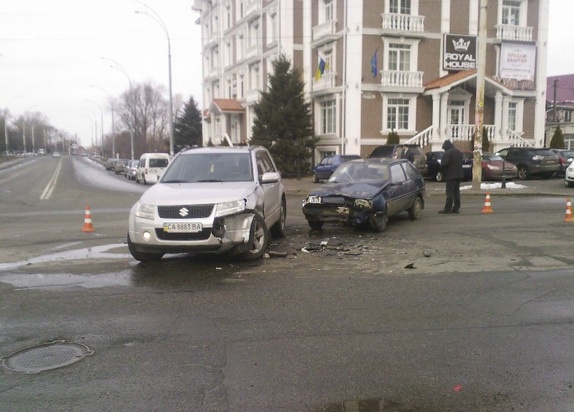 В Голосеевском районе Киева на перекрестке улиц академика Вильямса и маршала Конева произошло ДТП, в котором участвуют автомобили "Таврия Нова" синего цвета и Suzuki Vitara серебристого цвета.