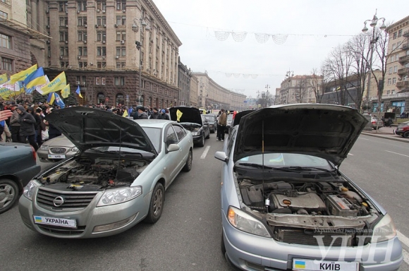 В столице под зданием КГГА в четверг проходит пикет против городской власти, активисты перекрыли движение по Крещатику, сообщает УНН. Под зданием находятся автомобили, в части из них открыты капоты.