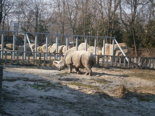 В столичном зоопарке впервые после зимы вышли на прогулку носорог, жираф и другие теплолюбивые животные.
