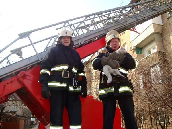 Пожарные спасли из пылающей квартиры белого кота
