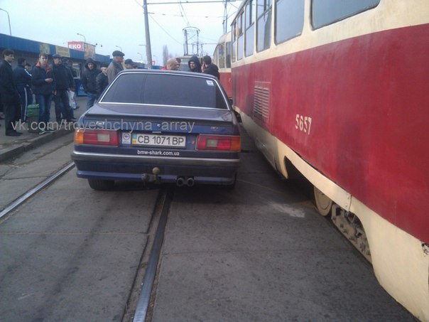 В четверг в 8.10 утра на ул Закревского 29, произошла авария. Как сообщает Андрей Морозов на странице ТРОЕЩИНА ВК* | Киев Вконтакте, лоб в лоб столкнулись трамвай и автомобиль "БМВ".