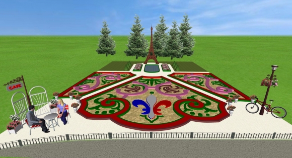 Автор композиций — «Киевзеленстрой». «Чтобы передать общий колорит страны, озеленители использовали бегонию, колеус, чернобрывцы», — сказал нам руководитель «Киевзеленстроя» Сергей Симонов.