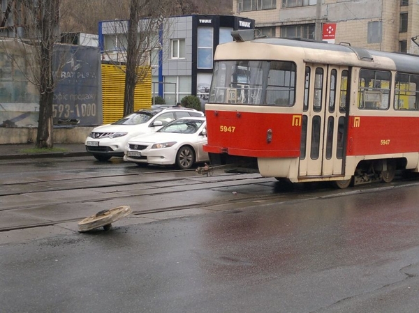 На Подоле у трамвая отвалилось колесо (ФОТО)