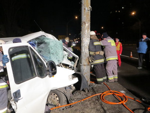 Жуткая авария произошла вчера в половине 12 ночи на проспекте Победы между станциями метро "Святошин" и "Житомирская", недалеко от поворота на бул. Вернадского. Водитель за рулем автомобиля Fiat Ducato, который двигался в сторону выезда из столицы, не справился с управлением, вылетел на бордюрный камень и врезался в электроопору. Мужчину-водителя зажало в салоне, его пришлось доставать из искореженного авто сотрудникам ГСЧС. Но спасти его жизнь не удалось.