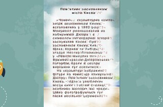 За її словами, довідник містить інформацію про найбільш визначні туристичні локації столиці – 30 перлин Києва, серед яких історичні пам’ятки, церкви, парки, театри, мости та інші міські споруди. Зокрема, йдеться про Софійський собор XI століття, міст «Хвиля Азову», головну спортивну арену країни, монумент «Батьківщина-Мати» та інші популярні об’єкти, без яких сьогодні неможливо уявити Київ.