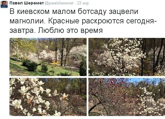 "В киевском малом ботсаду зацвели магнолии. Красные раскроются сегодня-завтра", - написал 23 апреля