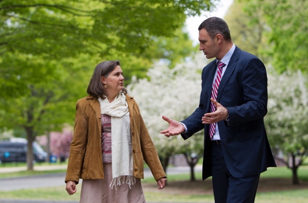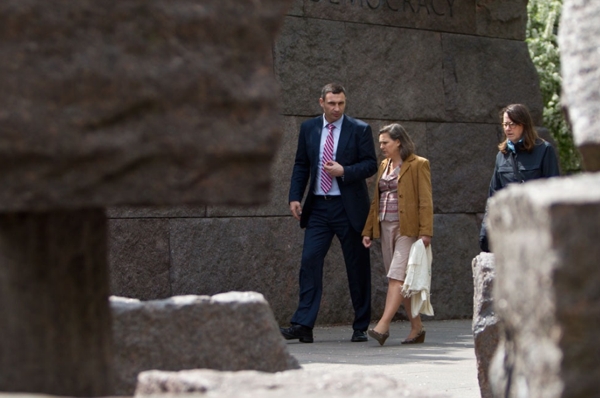 Мэр Киева Виталий Кличко встретился в Вашингтоне с помощником Госсекретаря США Викторией Нуланд. Общались они прогуливаясь в мемориальном парке Рузвельта в Вашингтоне.