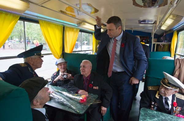 Накануне Дня Победы мэр Киева Виталий Кличко поздравил ветеранов и пригласил их на прогулку на ретро-трамвае в Пущу-Водицу.