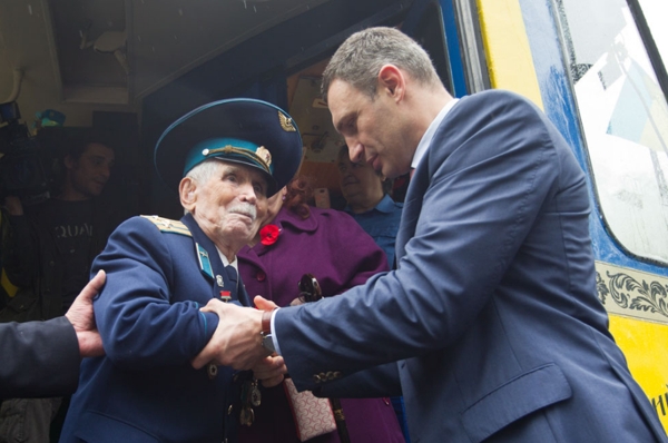 "На днях мы будем праздновать 70-летие со дня Победы над фашизмом во Второй мировой войне. Мы чтим ветеранов и память тех, кто погиб в годы войны, защищая родную землю. Я решил сделать для вас необычную прогулку по Киеву на трамвае в Пущу- водицу, чтобы на свежем воздухе неформально пообщаться. Хочу еще раз поблагодарить и низко поклониться каждому из вас за ваш подвиг", - сказал Виталий Кличко, обращаясь к ветеранам.