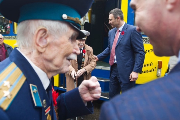 Как Кличко с ветеранами катался на ретро-трамвае (ФОТО)