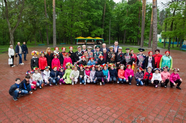 В Пуще-Водице ветеранов угостили традиционной полевой кашей. Дети из ансамбля "Зернышко" подготовили для ветеранов небольшой концерт. После обеда ветераны спели фронтовых песен.