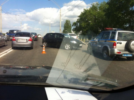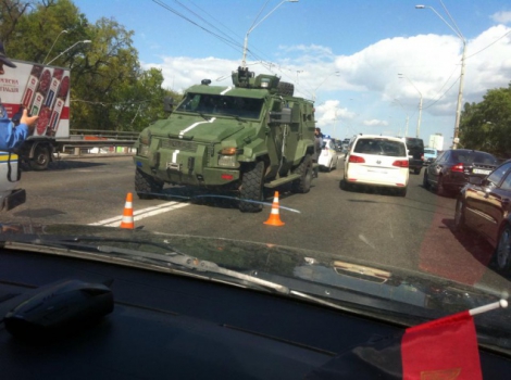 В понедельник, 18 мая, в Киеве на проспекте Победы вблизи станции метро «Нивки» военный броневик «КрАЗ» протаранил два легковых автомобиля.