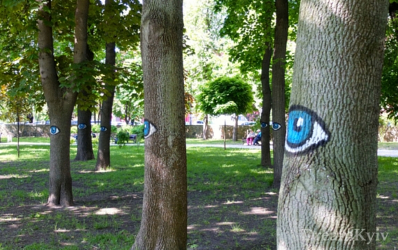 Художница Мариам Найем запустила проект в сфере уличного искусства в столичном парке Шевченко - изобразила на нескольких деревьях глаза.