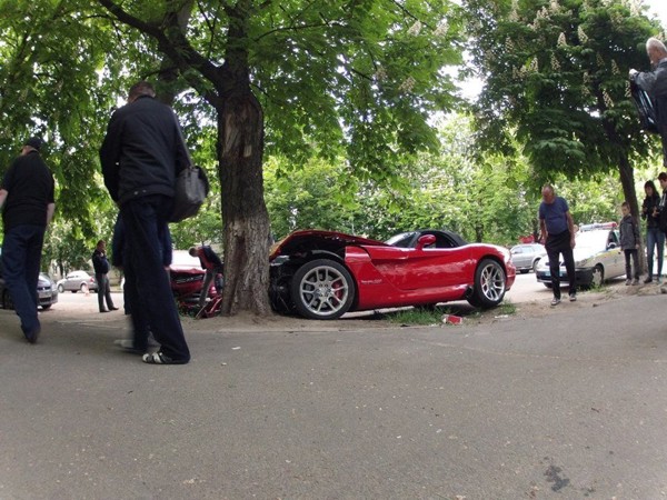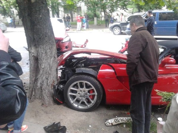 В Киеве водитель элитного автомобиля Dodge Viper Hennessey, стоимость которого достигает 200 тысяч долларов, врезался в каштан. Авария произошла еще 18 мая по улице Героев Сталинграда.
