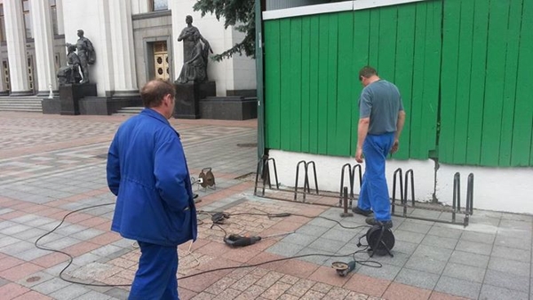 Сегодня возле Верховной Рады рабочие установили велопарковку для народных депутатов и гостей парламента.