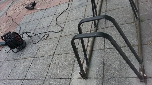 Велопарковка оборудована на пять двухколесных транспортных средств. Также отмечается, что ее соорудили из ножек офисных стульев.