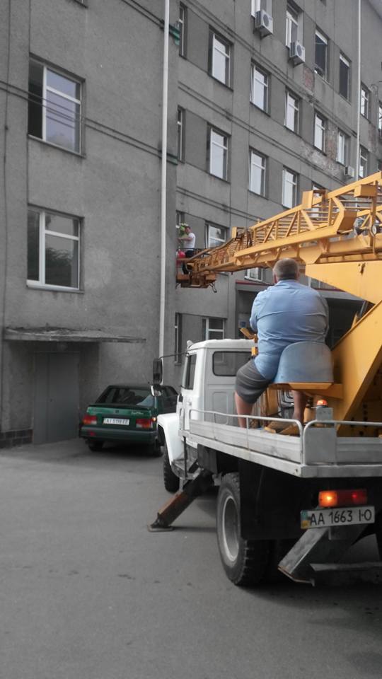 Что явилось причиной такого поступка? Наверное любовь и романтичность. А покорить «неприступную крепость» роддома мужчине помог водитель автомобиля с гидроподъёмником.