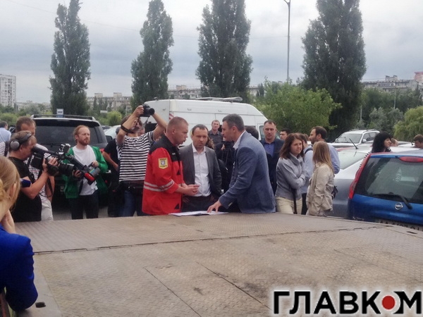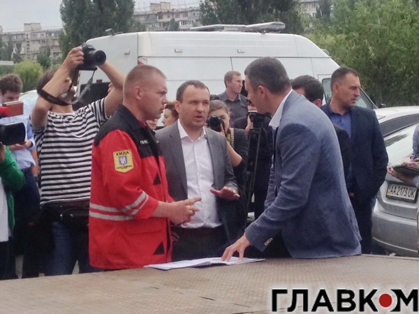На Русановку подтянулись руководители города - мэр Виталий Кличко и его зам Петр Пантелеев. Чиновники решили на месте разобраться в сложившейся ситуации.
