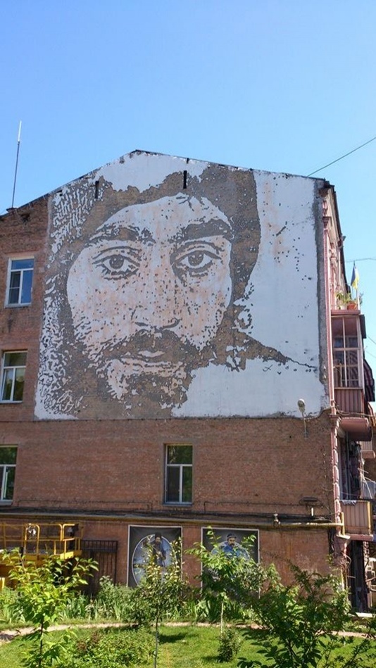 Автором граффити является художник из Лиссабона Александр Фарто, известный под псевдонимом Vhils, передает Vgorode.