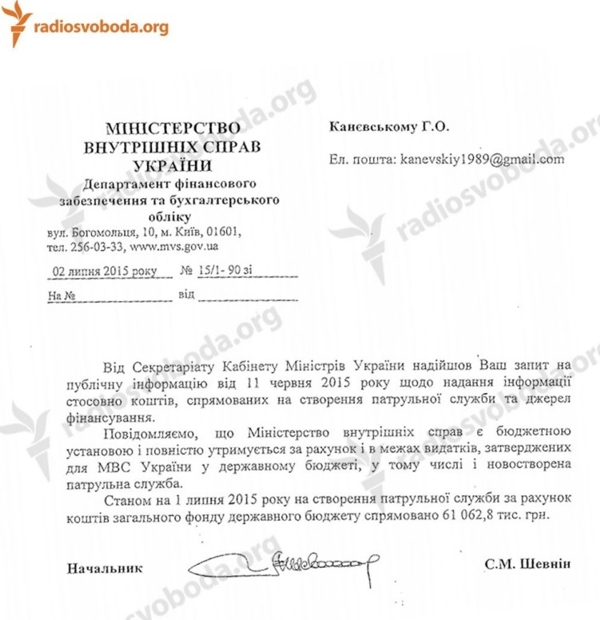 Запрос о стоимости создания патрульной службы был отправлен в МВД редакцией «Радио Свобода». После получения ответа от министерства, редакция его обнародовала.