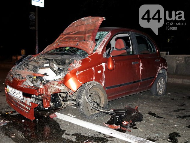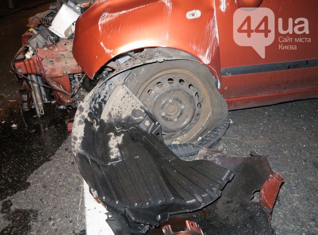 В Киеве в ночь с 14 на 15 июля на ул. Телиги, 23 произошло масштабное ДТП - женщина-водитель "Нисан Микро" снесла дорожный знак и перевернулась.