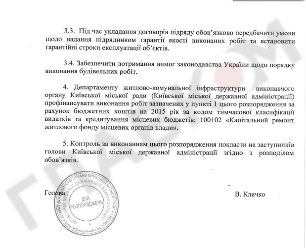Заказчиком выполнения работ определено коммунальное предприятие «Дирекция по капитальному строительству и реконструкции« Киевстройреконструкция ». Он должен определить соответствующие проектные и подрядные организации, позаботиться о разработке и утверждении надлежащей документации, а также предусмотреть условия по предоставлению подрядчиком гарантии качества выполненных работ.
