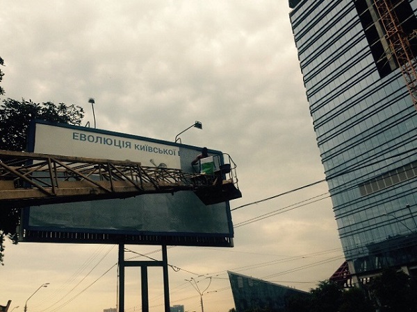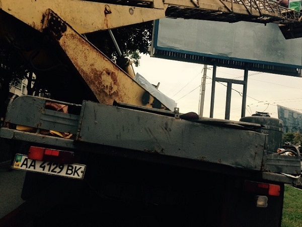 «Была зафиксирована машина с номерами АА4129ВК, с помощью которой неизвестные абсолютно противозаконно заклеивают борды», – отметил Турий.