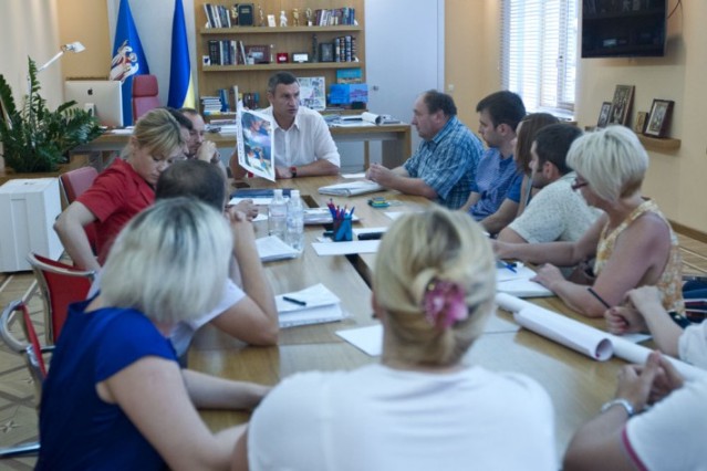 Киевский городской глава Виталий Кличко вместе с заместителем председателя КГГА Павлом Рябикиным и начальником киевской милиции Александром Терещуком встретились с инициативной группой жителей, протестующих против застройки на проспекте 40-летия Октября, сообщает пресс-служба мэра