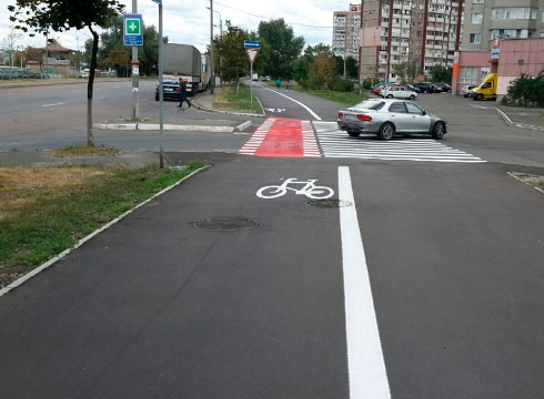 В рамках строительства велосипедных дорожек, при содействии КП ДЭУ Деснянского района, на ул. Оноре де Бальзака и просп. Генерала Ватутина в двенадцати местах нанесен новый тип разметки - 1.15. Она обозначает места, где проезжую часть пересекает дорожка для велосипедистов. Об этом сообщили в КК "Киевавтодор".