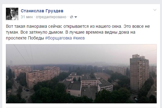 Как сообщают жители правого берега столицы, просыпались они без будильника - дышать становится тяжело, потому что небо над городом заволокло едким дымом.