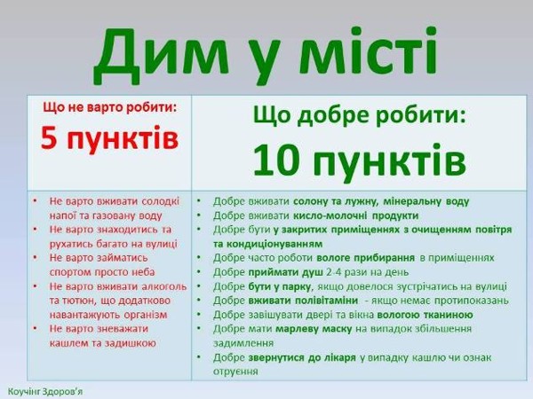 Специалисты дают советы, что следует делать, а чего нет в случае задымления города. Такая памятка появилась в сети Facebook.