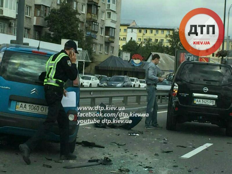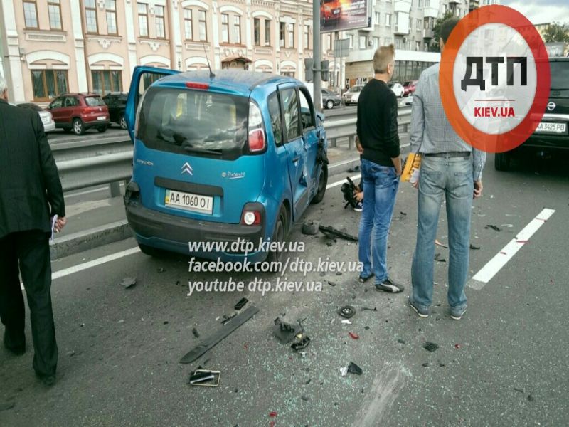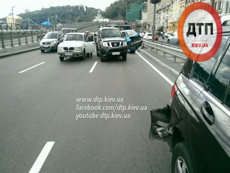 Там произошло столкновение сразу четырех автомобилей, которые двигались по Набережно-Хрещатицкой от туннеля на Почтовой к Валам.