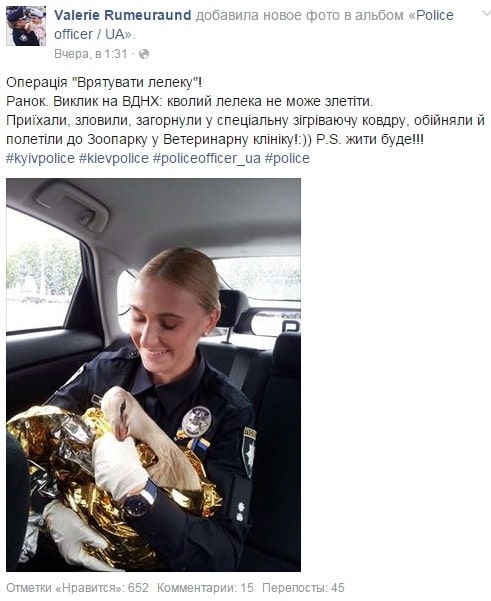 По ее словам, патрульные, которые приехали на вызов, поймали аиста.