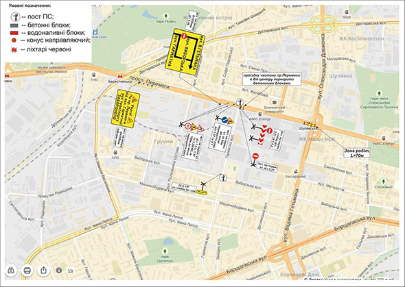 Сегодня, 18 сентября, с 16:00 возле станции метро «Шулявская» будет перекрыт проспект Победы в сторону центра города.