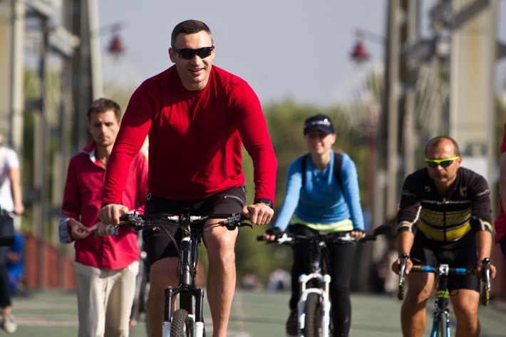 Мэр Киева Виталий Кличко открыл новую велодорожку, проехавшись вместе с ответственными за ее строительство по веломаршруту "Троещина - Европейская площадь". И отметил, что отныне все желающие менее чем за полчаса могут комфортно и безопасно добраться на велосипеде с Троещины в центр.