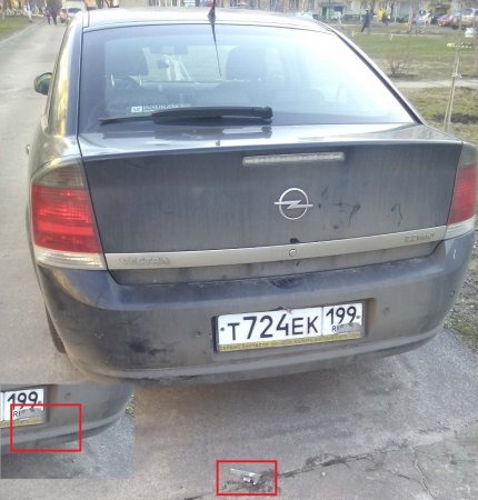 На этих фотографиях, сделанных еще в апреле, видно как владелец автомобиля с российскими номерами заклеивает табличками «ПТН ПНХ» свой госномер.