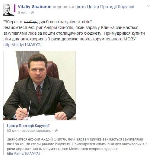 Стоит отметить, что в этом году КГГА закупило еще один препарат для лечения онкобольных по завышенной цене. Так, препарат "Трастузумаб" был закуплен по цене 14701,80 грн, хотя максимальная оптово-розничная цена, зарегистрированная в Украине в реестре оптово-отпускных цен составляет 12500,00 грн. Фактически, препарат запрещено закупать дороже чем на 10% от указанной цены, то есть дороже 13750,00 грн. Оба тендера проводились под руководством Председателя комитета по конкурсным торгам Департамента здравоохранения КГГА Андрея Скибяка.