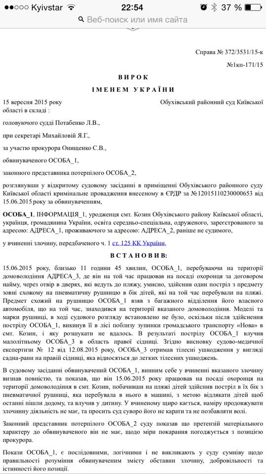 Родители детей возмущены. "Спустя 3,5 месяца, наш самый "гуманный суд в мире" вынес приговор. Дал стрелку всего-то 200 часов общественных работ. Вот такая у нас цена за прицельную стрельбу по детям. Больше у меня нет никаких слов", – написала у себя на странице в Фейсбук Кристина Гайдамака.