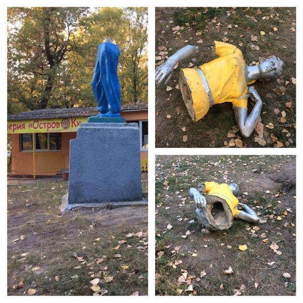 В Киеве на Трухановом острове неизвестные вандалы разрушили скульптуру комсомолки. Об этом сообщается на странице "Пейзажки" в Facebook. Теперь верхняя часть изваяния (торс и руки девушки) валяется на земле, а ноги продолжают стоять на постаменте.