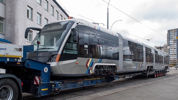 В Шевченковское депо из Львова доставили современный, низкопольный трамвай "Электрон" украинско-немецкого производства. Трамвай будет проходить испытания на скоростной линии до конца этого месяца.