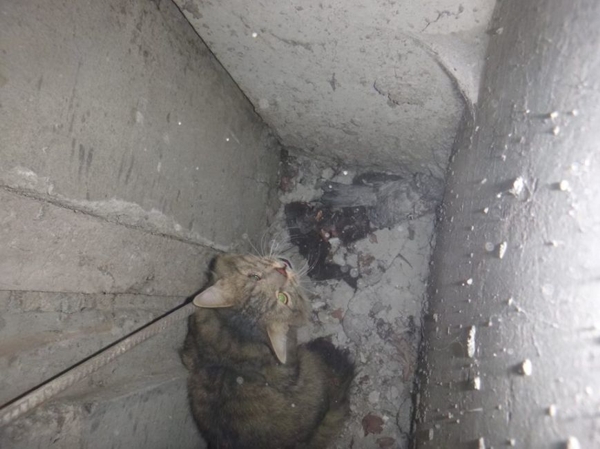 На улице Синеозёрной из вентиляционной шахты спасли кота (ФОТО)