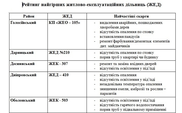В Киеве составлен рейтинг жилищно-эксплуатационных участков (ЖЭУ), которые по состоянию на октябрь имеют самую низкую оценку в работе и наиболее неудовлетворительные показатели обслуживания киевлян.