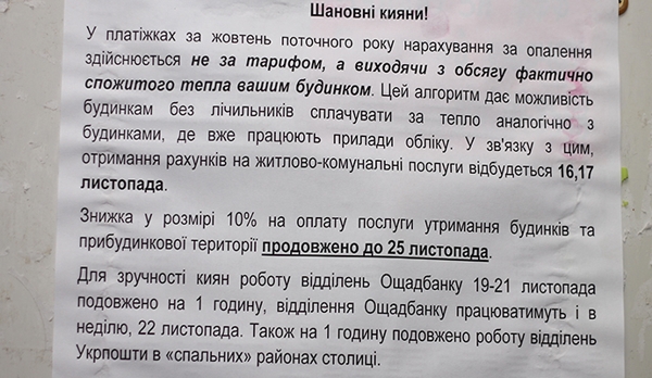 Учитывая то, что до дедлайна остается мало времени, а квитанции стали приходить лишь с 16 ноября, было принято решение — для удобства жителей столицы 19-21 ноября на один час продлить работу отделений «Ощадбанка». Оплатить квитанции можно будет также и в воскресенье, 22 ноября.