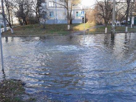 На улице Юности, что в Днепровском районе, в результате аварии, затопило часть проезжей части и пешеходной зоны.